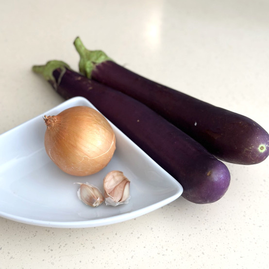 Once the eggplant is cooked and tender (do the fork test - if a fork pierces through the eggplant easily, your eggplant is done. If it doesn't, let it cook some more), strain it and put it to the side.